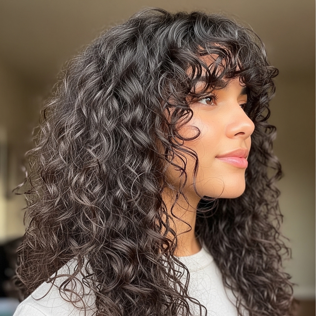 The key here is the wispiness. Unlike a blunt, heavy fringe, wispy curly bangs are cut into varying lengths within the bang section itself. This allows the individual curls to coil and spring freely at different heights, creating a soft, textured, and incredibly full effect across your forehead. It connects seamlessly with the layers throughout the rest of your hair, ensuring there are no harsh lines—just a waterfall of volume and texture from root to tip.
