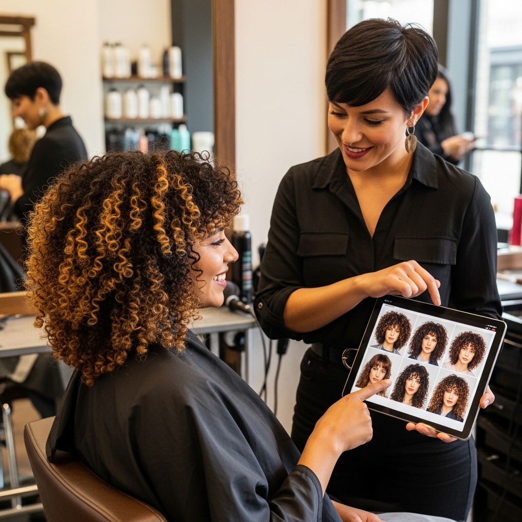 1. Come with Dry Hair: Your curls should be in their natural, dry state so your stylist can see your true curl pattern, density, and how your hair falls naturally.