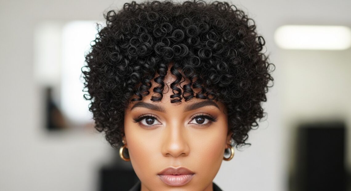 While wispy bangs are great for some, those with coily, tight curl patterns (Type 4 hair) can achieve stunning volume with a more blunt approach. A carefully cut blunt bang sits with beautiful density and shape right above the eyebrows. Because of the incredible shrinkage factor of coily hair, these bangs often appear much shorter when dry, creating a bold, graphic, and super stylish statement.