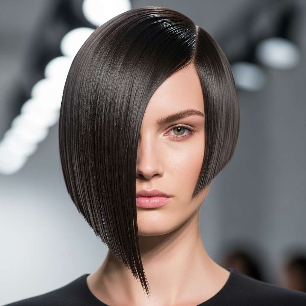 How to style it: The goal is to maintain that sharp, clean line. Use a flat iron to smooth the hair and emphasize the angular cut. You can add a slight inward or outward flip at the ends, depending on your style preference, to further enhance the dimensional effect.