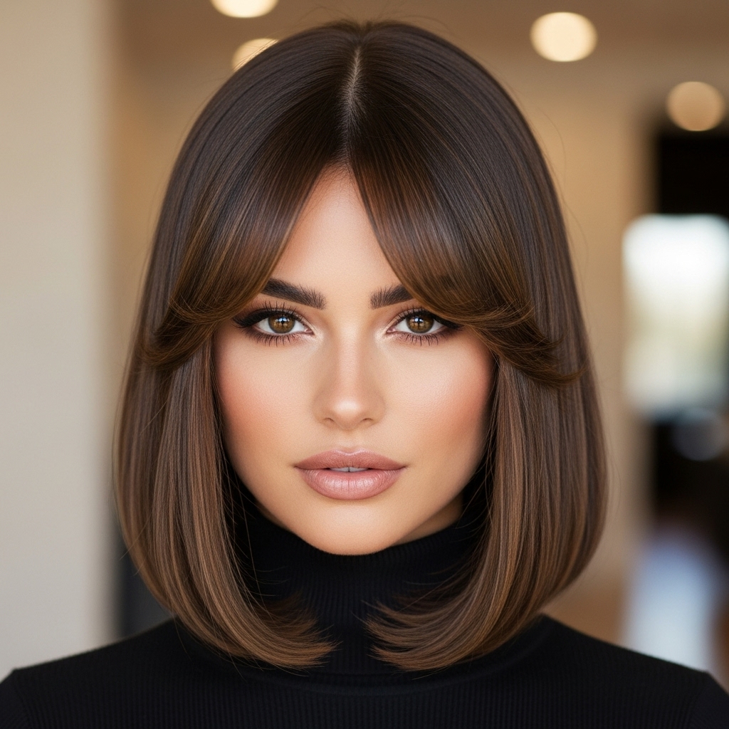 The Blunt Lob with Curtain Bangs: A Classic with a Lift