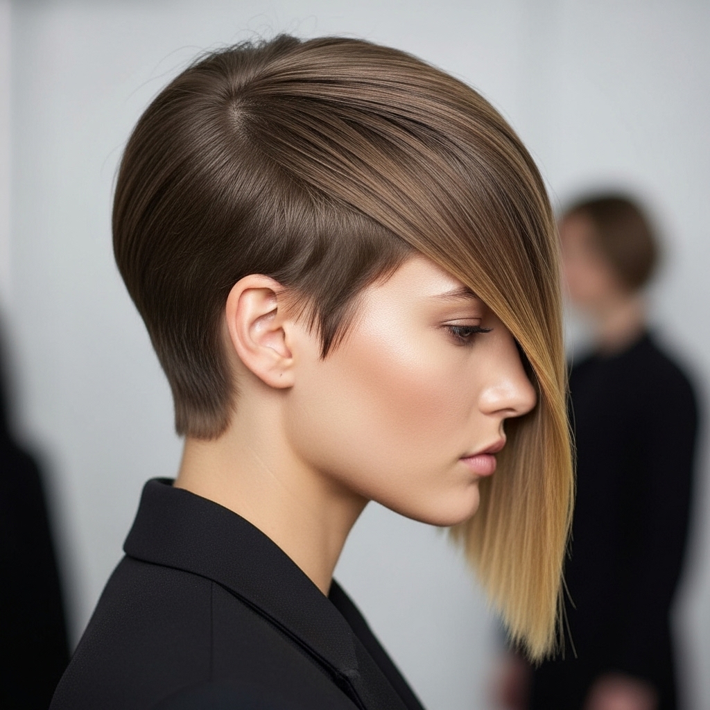 Sometimes, volume isn’t just about lift at the crown; it’s about shape. The angled lob, or A-line bob, is a structural masterpiece that creates dramatic volume through its sharp contrast in length. This cut is significantly shorter in the back and gradually longer in the front, creating a strong diagonal line.