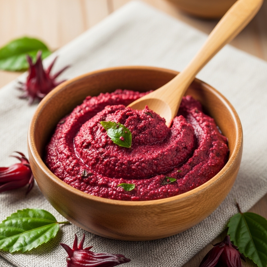 Step 2: Blend the rosemary leaves and hibiscus flowers with a little water to form a smooth paste.
