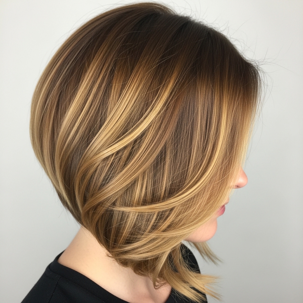 Color can magnify the effects of this cut. You want color that follows the shape, not fights it. Balayage or babylights that are placed diagonally will accentuate the movement.