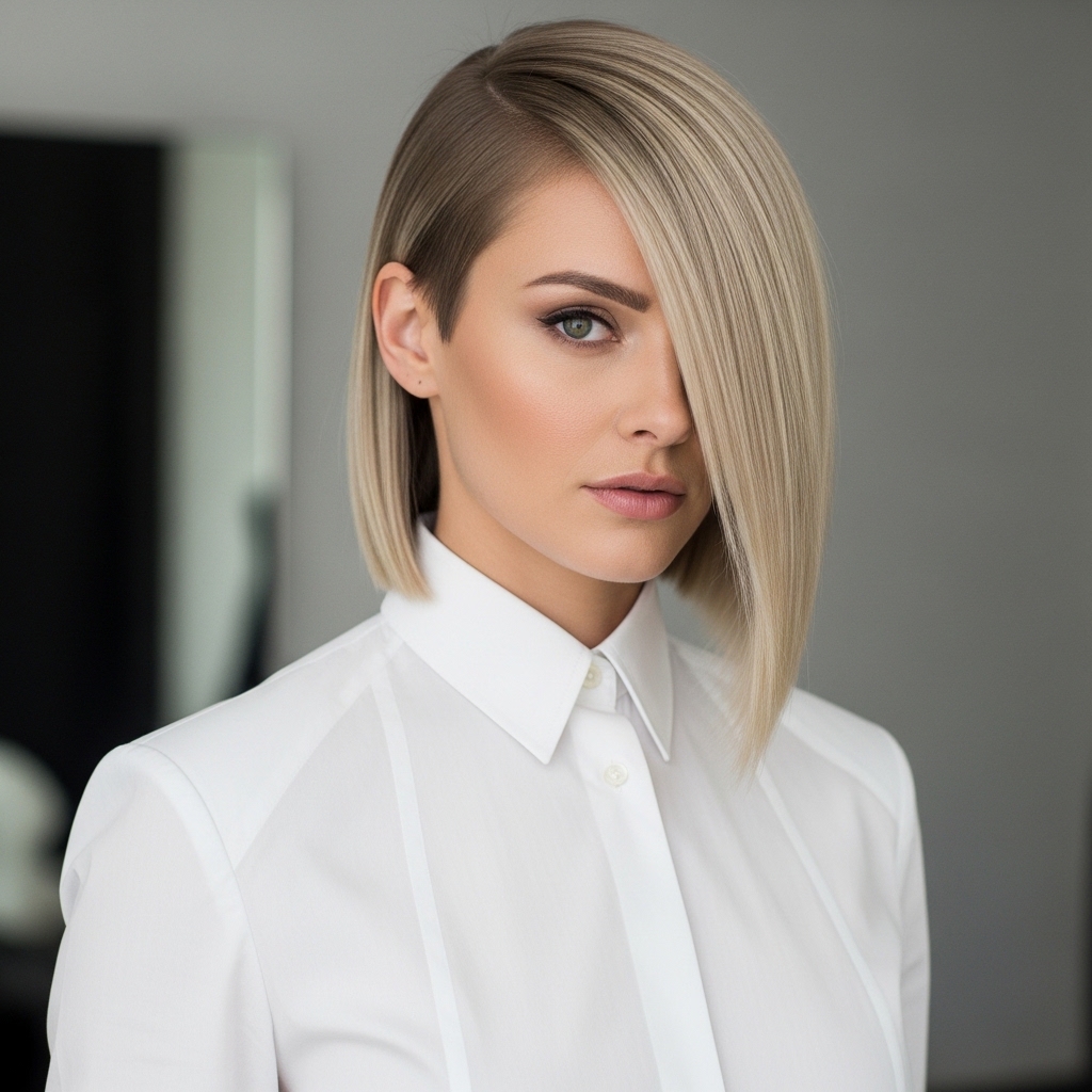 Diagonal lines are your best friend. They break up that boxy silhouette. An asymmetrical cut introduces a dynamic, slanted line that starts high near the face and sweeps down.