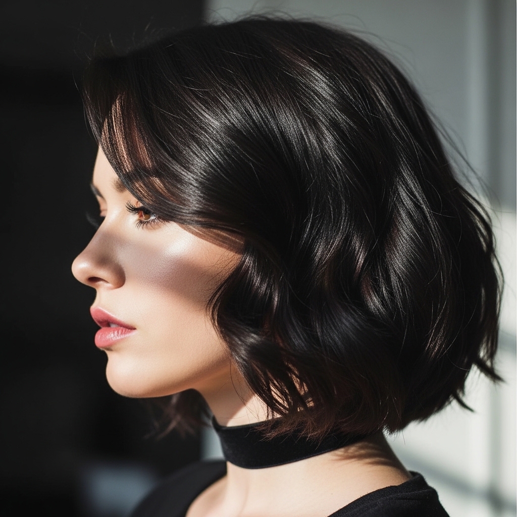 The shorter side can graze your jawline or sit just above it. This length balance is key for the modern quiet luxury bob—polished but not fussy.