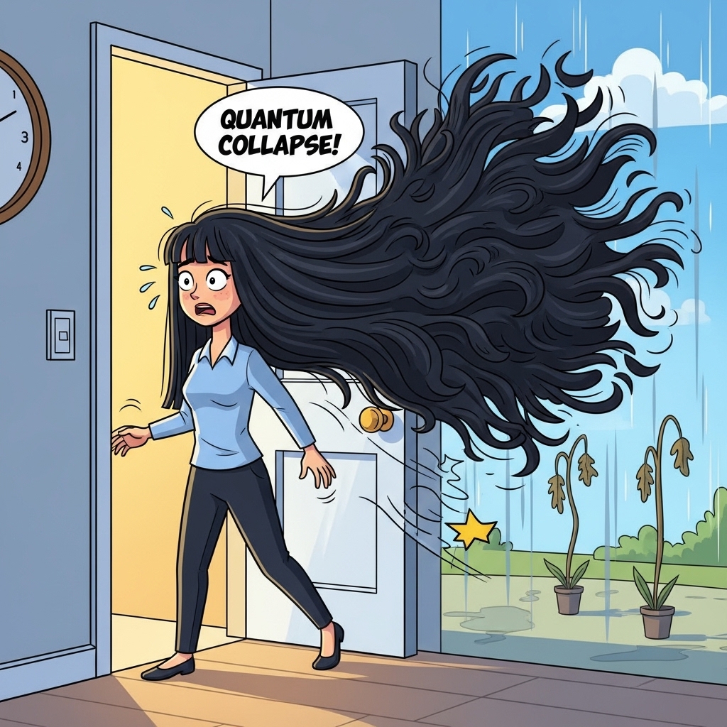This is why your hair might look perfect indoors but turn into a frizzy mess outside. Environmental factors “collapse” the superposition, forcing your hair into one state or the other.