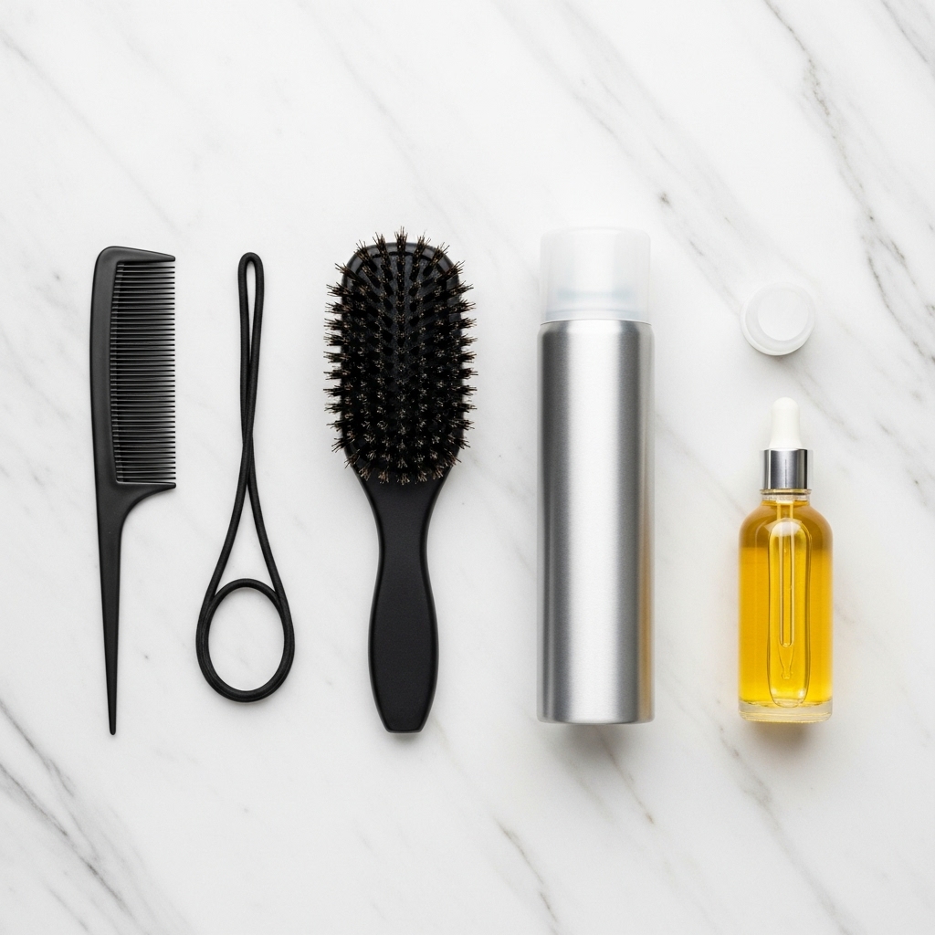 Your tool kit is simple but essential: a fine-tooth comb for precision, a strong-hold hair elastic (preferably one that matches your hair color), a boar bristle brush for smoothing, and a light-hold hairspray or a shine serum to tame flyaways and add a professional finish.