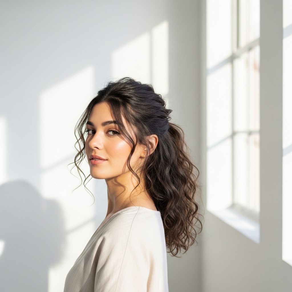Not every day calls for super-sleek hair. The textured blunt ponytail is a more relaxed, modern take that feels cool and effortless. It’s perfect for wavy or curly hair, or for when you want to embrace a little natural movement.
