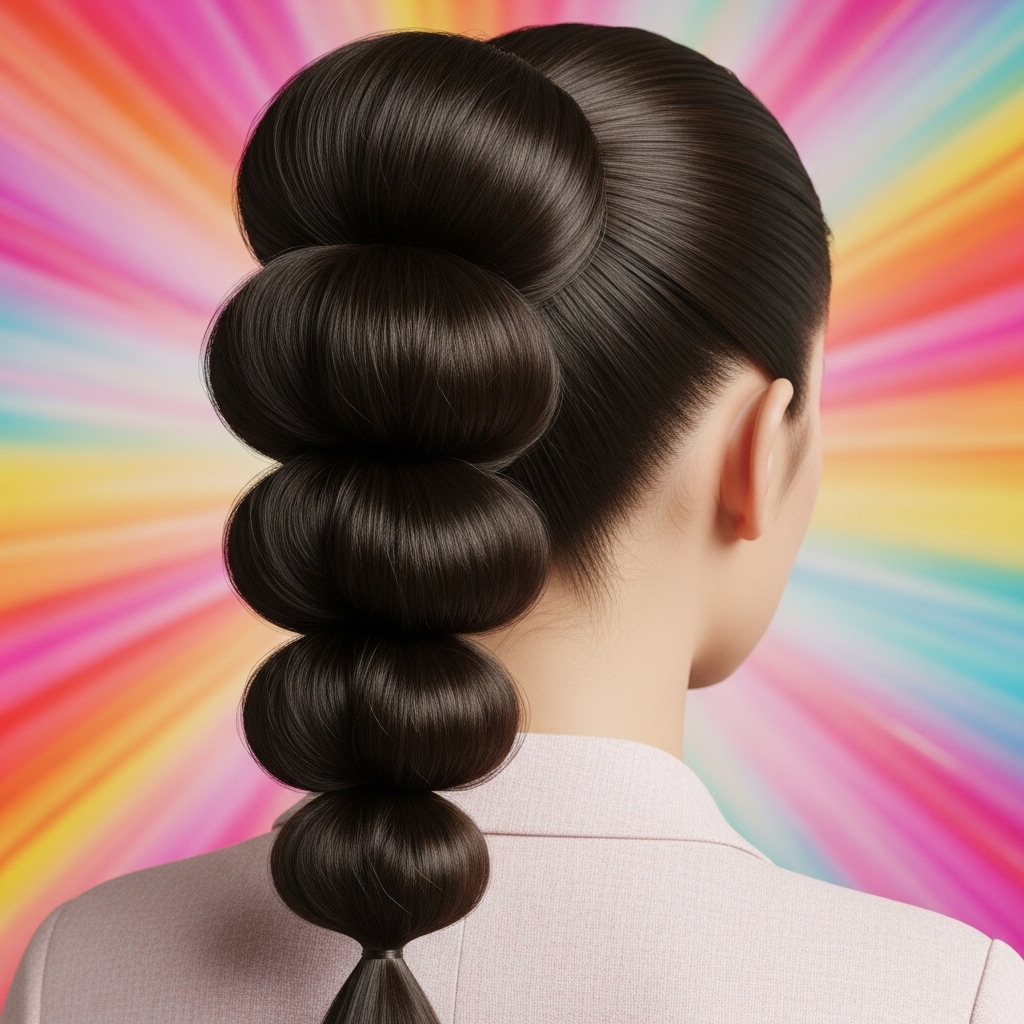Ready to have some fun? The bubble ponytail is a playful and trendy iteration that adds major volume and a dose of whimsy to the classic blunt look. It looks complicated but is deceptively simple.