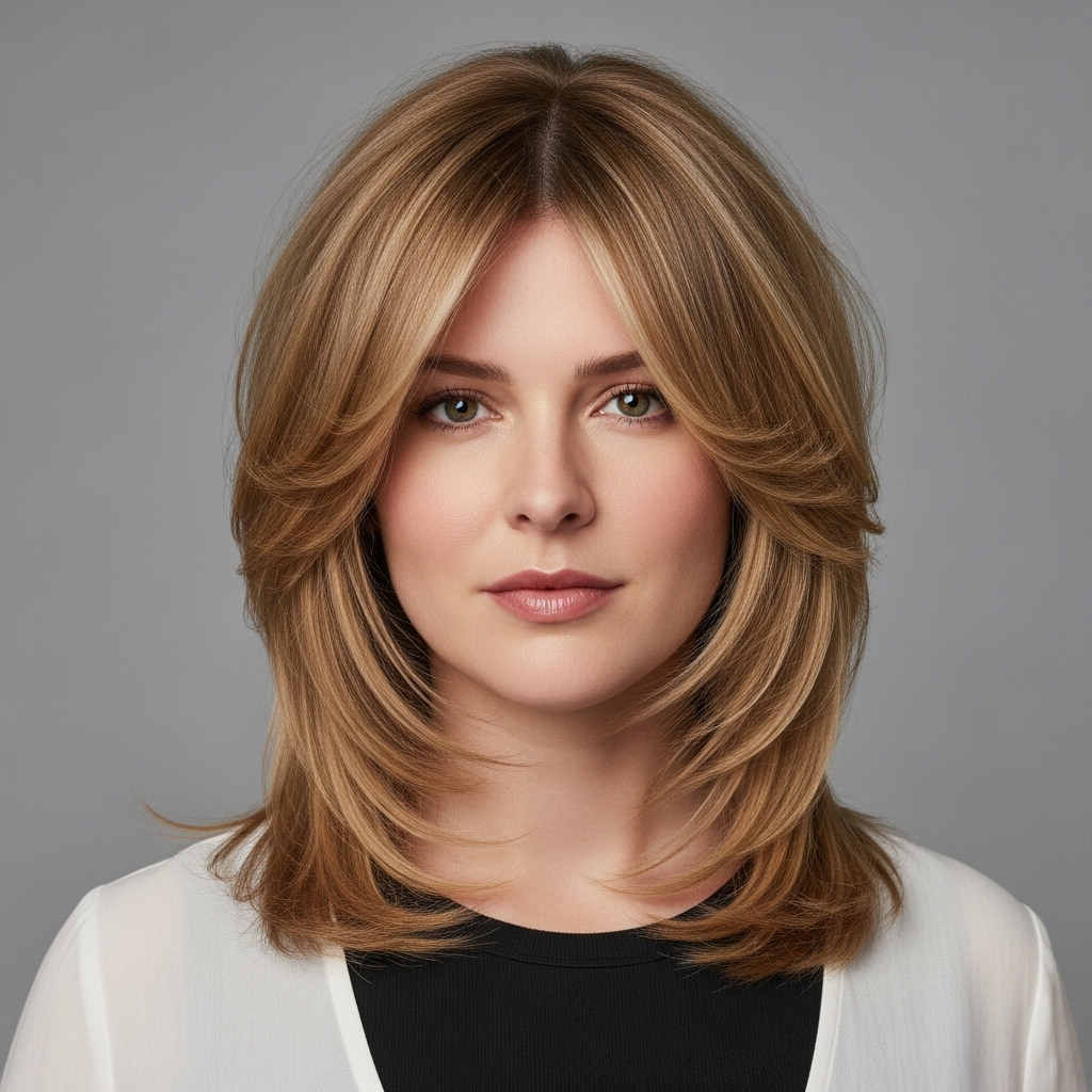 For Round or Square Face Shapes: The goal is to create length and angles. Ask your stylist for longer, face-framing layers that start at the jawline or below to elongate the face. A deep side part and wispy, longer curtain bangs can also help create a slimming effect.