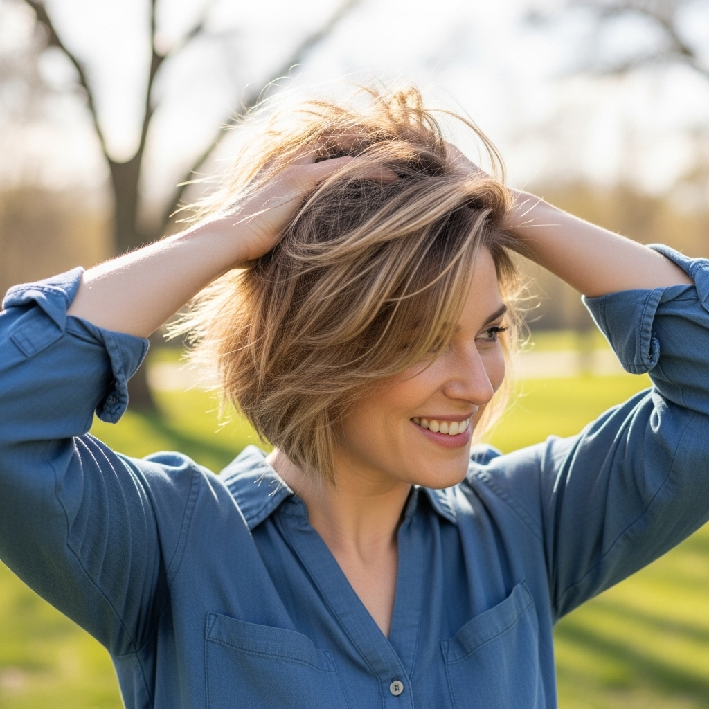 Once dry, it’s time for the magic. Spray a texturizing spray onto your palms, rub them together, and then scrunch it into your ends and mid-lengths. Use your fingers to twist small sections randomly, breaking up any uniformity. The key is to piece it out. If you have any stubbornly flat areas, gently backcomb them at the roots with your fingers for a little extra oomph.
