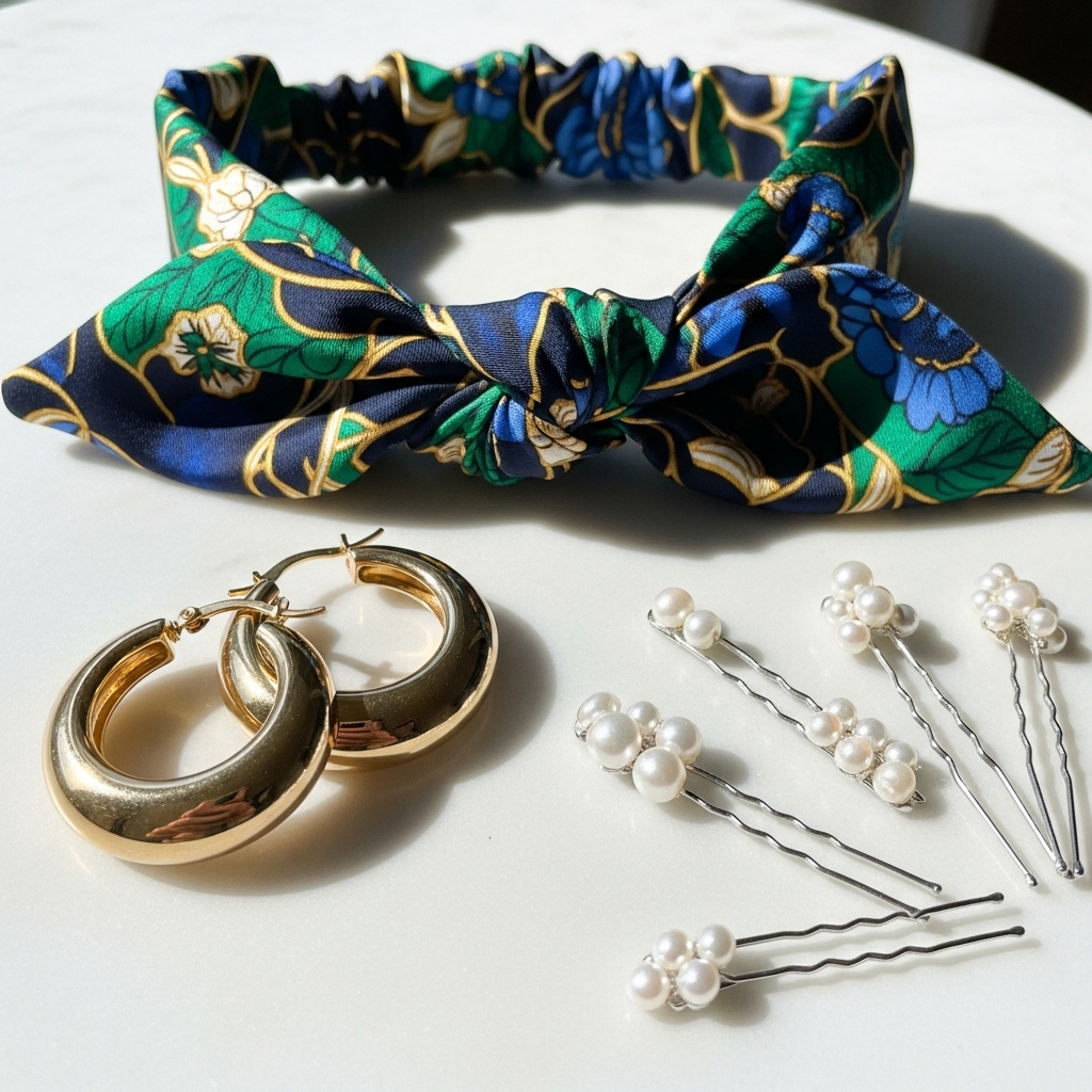 Headbands: From thin, metallic ones to fabric scarf bands, a headband can add a pop of color or a touch of boho chic. It also helps keep growing-out bangs at bay.