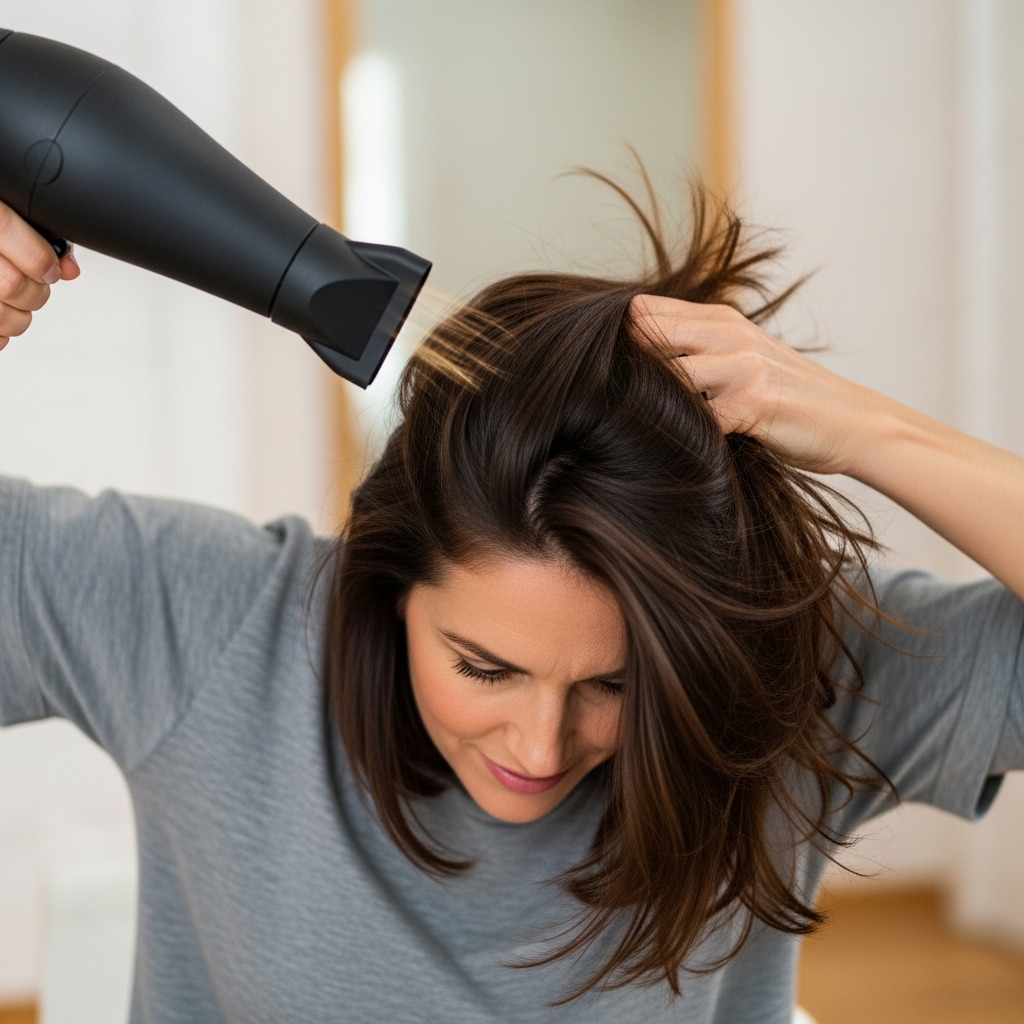 Step 2: Use a blow dryer on low heat, focusing on roots for 1-2 minutes.