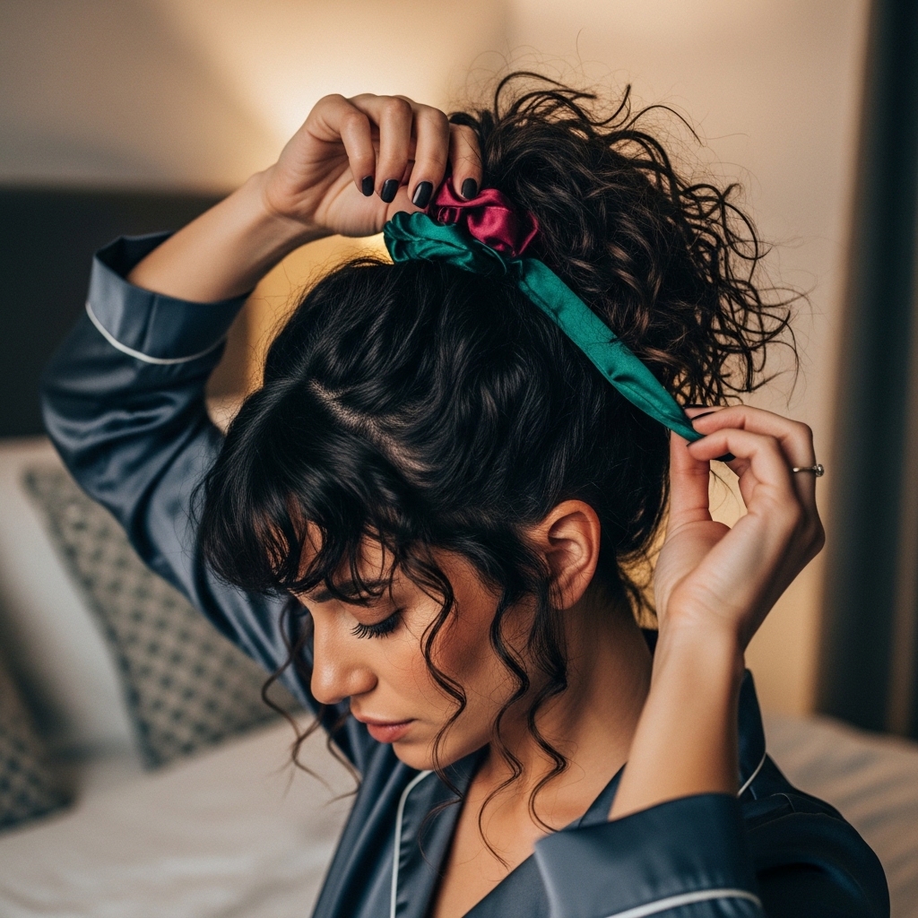 Protecting your style overnight is non-negotiable. The classic “pineapple” is your best friend. Gather all your hair into a very loose, high ponytail on top of your head using a silk scrunchie. The key is “loose” – you don’t want to flatten the crown.