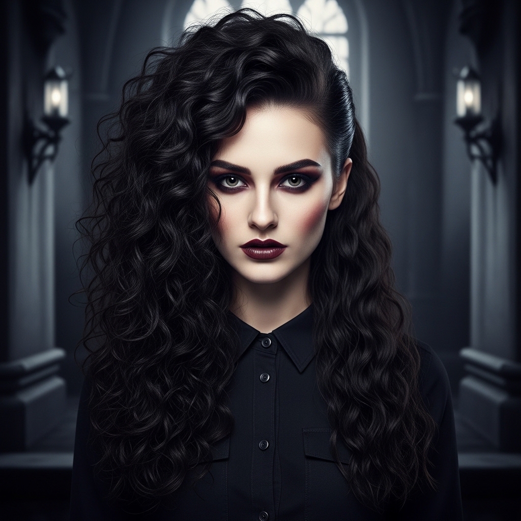 To style, twist these pieces around your finger while damp to encourage a defined curl. Or, once dry, you can lightly separate them with your fingers for a softer, more romantic goth hairstyles look that frames your features beautifully.