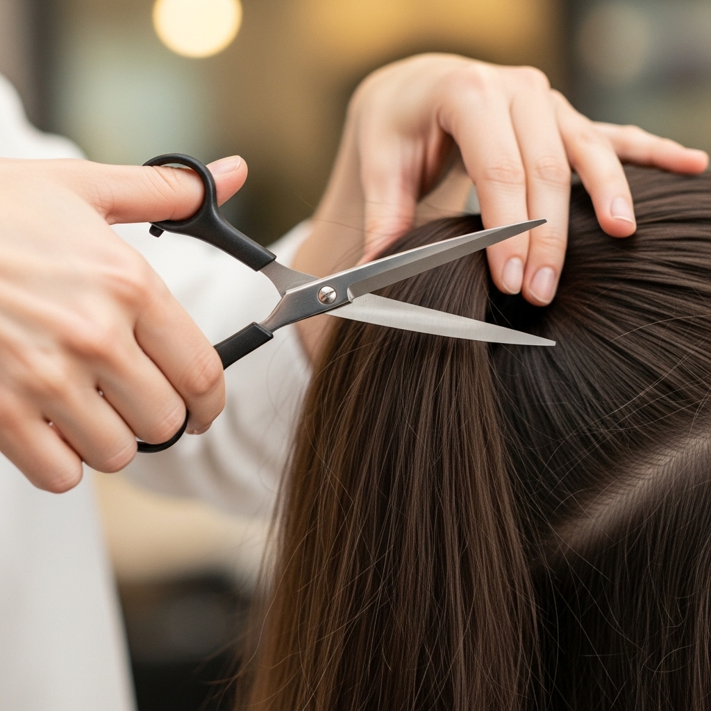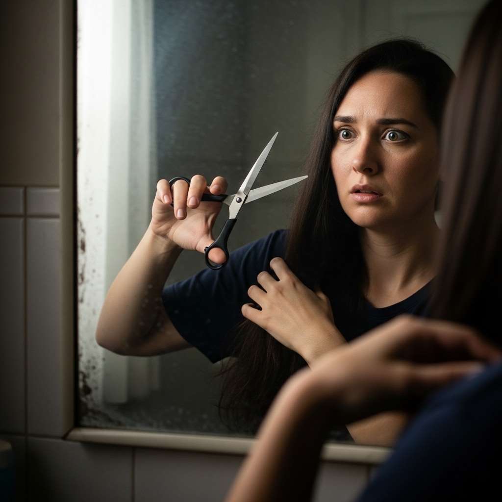 I took a deep breath and made the first cut. The sound of the scissors slicing through my hair was louder than I expected. My heart raced as the first chunk fell to the floor.