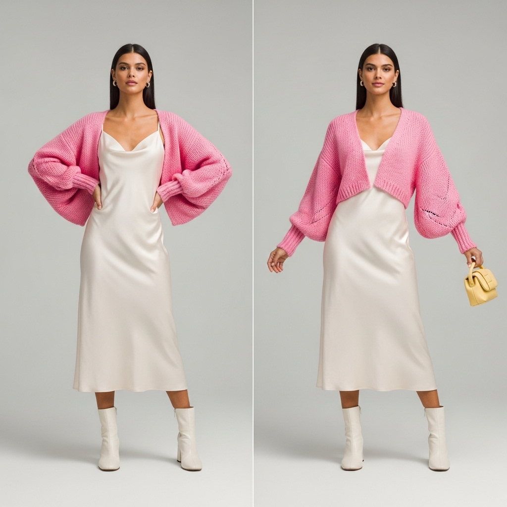 This is the quintessential butterfly layer combo. Take a delicate, silky slip dress—a wardrobe staple—and throw a cropped, slightly boxy cardigan over it. The contrast between the sleek dress and the soft, textured knit is pure magic. Unbutton the cardi for a more effortless vibe, or button it up for a slightly more polished look.