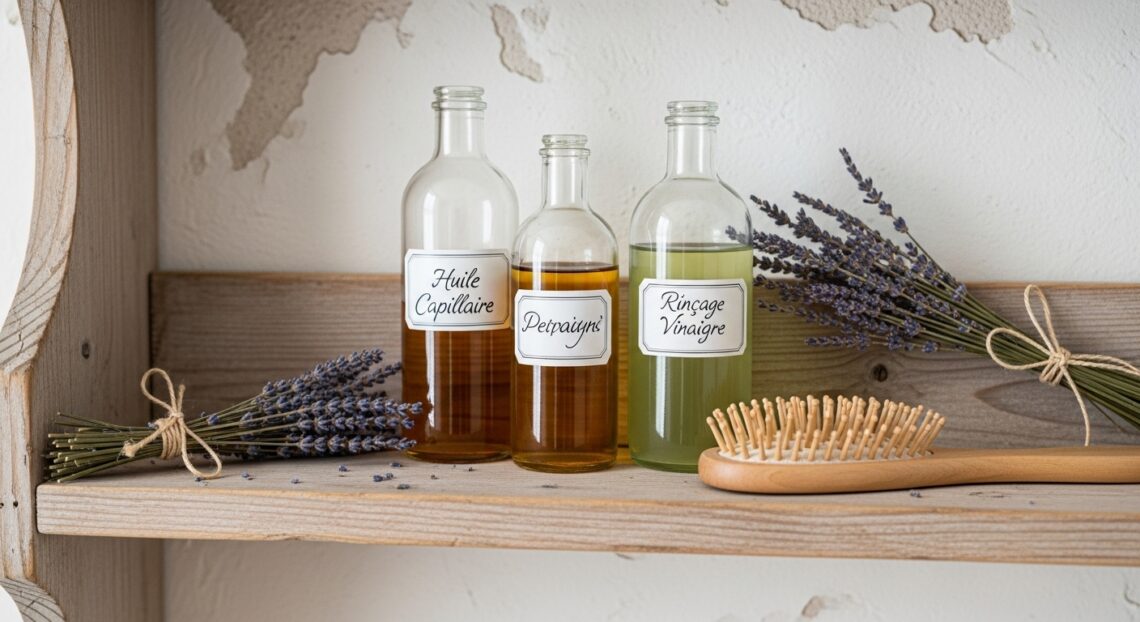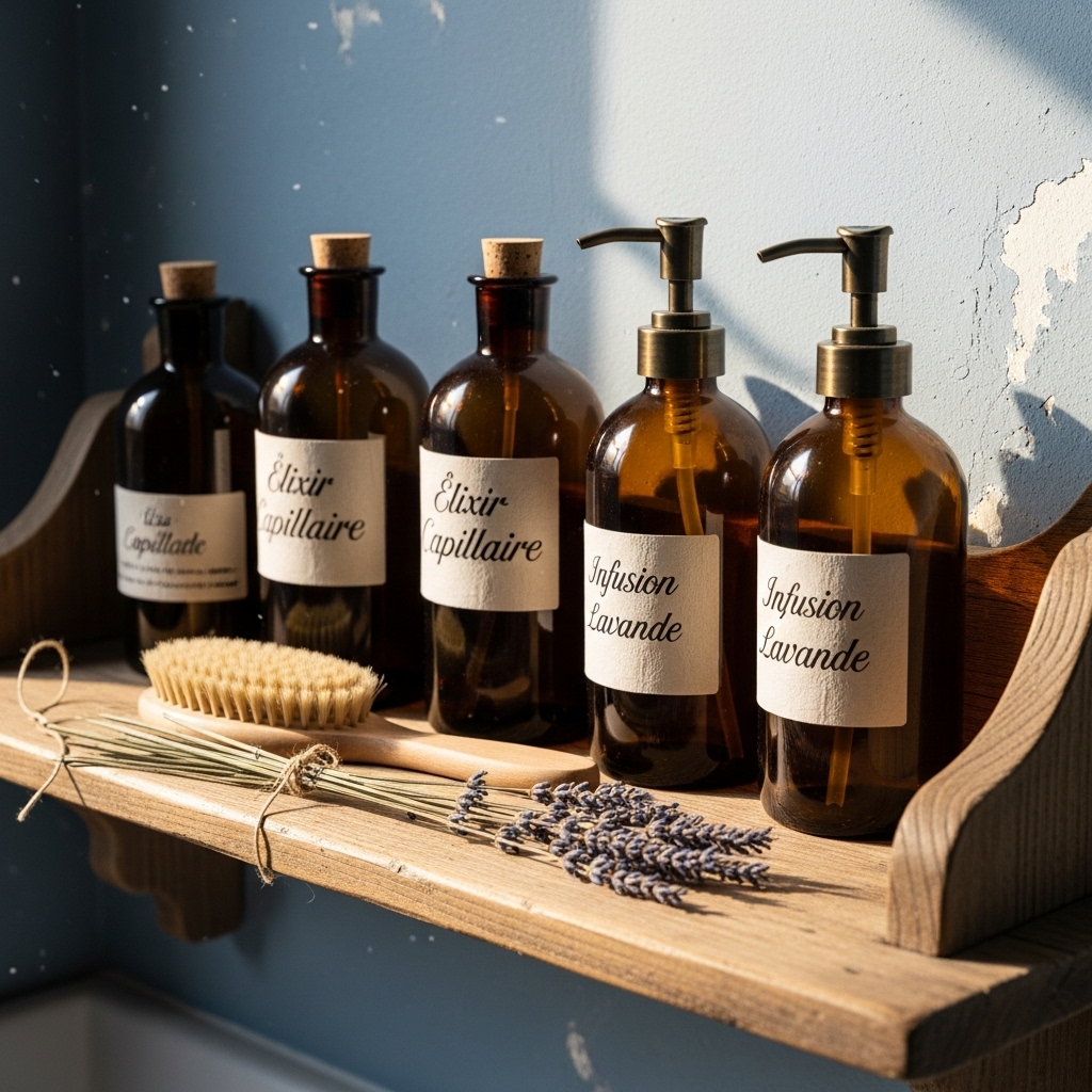 Herbal Infusions: Rosemary, chamomile, and lavender are steeped in hot water to create nourishing hair rinses that promote growth and scalp health.