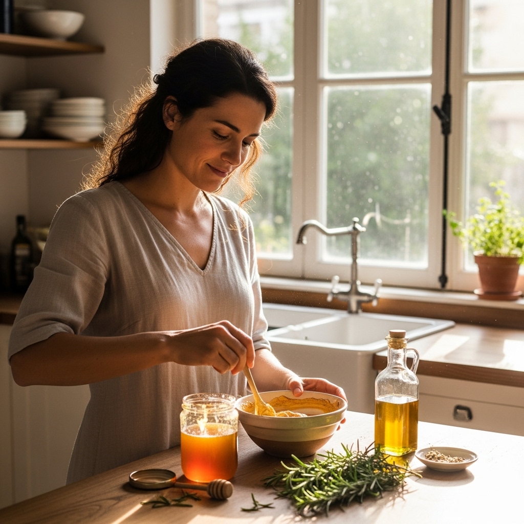 Natural Oils: A few drops of argan or jojoba oil are used to tame frizz and add moisture—far more sparingly than commercial serums.