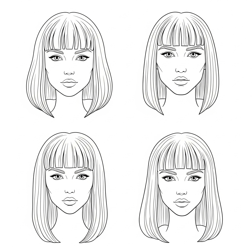 For Round Faces: The long, diagonal lines of the bangs create the illusion of length, helping to elongate the face and make it appear more oval.