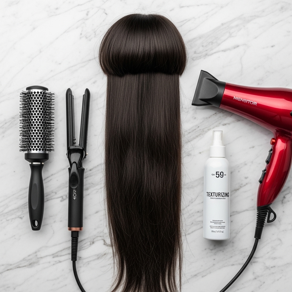 Step 1: The Blow-Dry. After washing your hair, apply a heat protectant and a light-hold mousse or texturizing spray to your roots and bangs. Using a round brush, blow-dry your bangs section by section. For the classic curtain effect, direct the hair away from your face, rolling the brush under at the ends to create a soft flip.