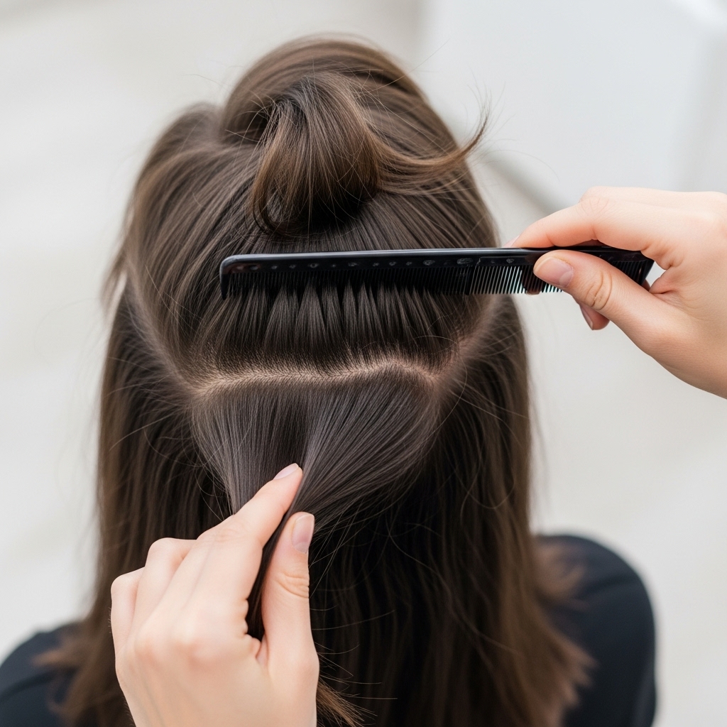 Step 2: Create a Foundation of Volume. Flip your head upside down and gently backcomb the hair at the crown. You don’t need to go full 80s; just a little teasing at the roots will create a hidden cushion of volume. Smooth the top layer back over it.