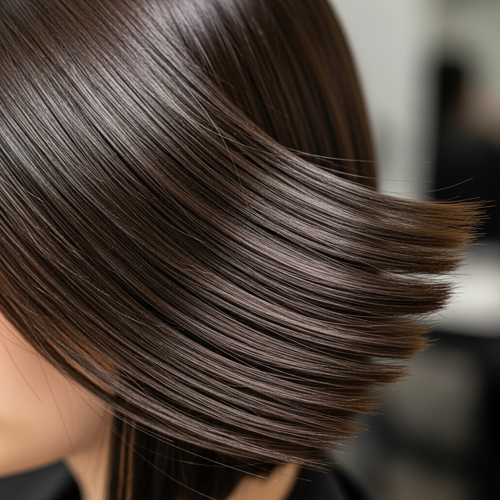 The Chop: The first step is finding a stylist you trust. Bring photos of the exact length and finish you want, emphasizing the “sleek” and “blunt” elements. Communication is key to getting the precise cut that will frame your face perfectly.